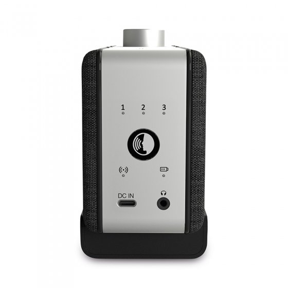 Avez-vous parfois des difficultés à suivre les dialogues à la télé ? Êtes-vous obligé pour cela de hausser le volume, et vous sentez-vous dérangé par les bruits de fond dans les films et les séries ? Dans ce cas, l'amplificateur vocal TV portatif peut vous aider ! En tant que haut-parleur transportable, il peut se placer n'importe où – par exemple juste à côté de vous sur l'accoudoir du canapé. Son premier avantage : la source sonore se trouve dans votre proximité immédiate, et vous entendez bien avec un réglage moins fort du volume sonore. (En fait, vous pouvez même régler le volume de la télé sur zéro car l'amplificateur fonctionne indépendamment des haut-parleurs de la télé.) Deuxième avantage : les voix sont plus nettes.