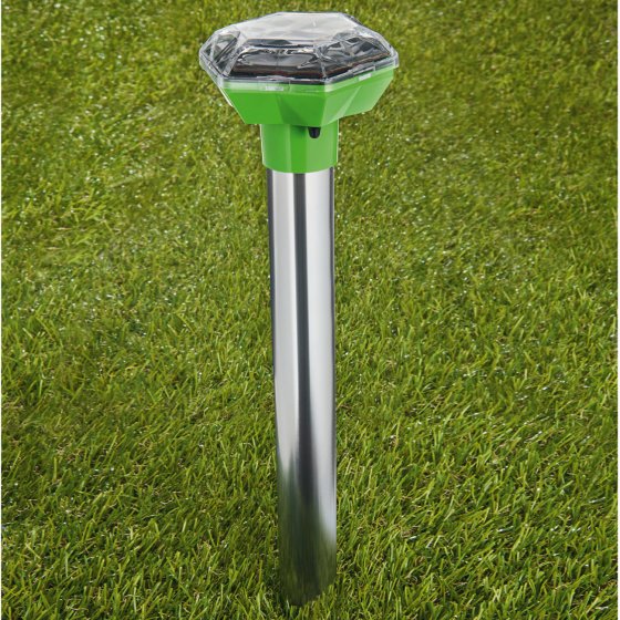 Cet anti-rongeurs solaire est et reste la méthode la plus fiable pour éloigner les taupes, mulots et campagnols sans les blesser ! Il émet, à intervalles d'environ 25 secondes, des ondes de vibration souterraines et un signal acoustique à fréquence variable entre 400 et 1 000 Hz. Ce changement de fréquence permet de minimiser l'effet d'accoutumance à l'appareil. Ces impulsions sont absolument insoutenables pour les rongeurs qui prennent la fuite pour de bon ! Grâce à ses facettes spéciales, cet ANTI-RONGEURS SOLAIRE "DIAMANT-PLUS" est encore plus performant ! Grâce à sa forme en diamant, les rayons solaires touchent également ses pourtours pour que la batterie soit suffisamment chargée aussi bien tôt le matin que le soir. Le résultat : une réserve de tension extrêmement élevée qui lui permet de fonctionner jusqu'à 7 jours sans lumière. Idéal également en cas de faible luminosité en automne. Périmètre d'action XXL : jusqu'à 1 250 m2 selon la configuration du terrain ! Boîtier robuste et résistant aux intempéries avec piquet en aluminium (IP 54), hauteur : env. 34 cm. Respectueux de l'environnement et inoffensif pour l'homme et les animaux domestiques. Un cadeau ingénieux pour un bon ami qui a un jardin !