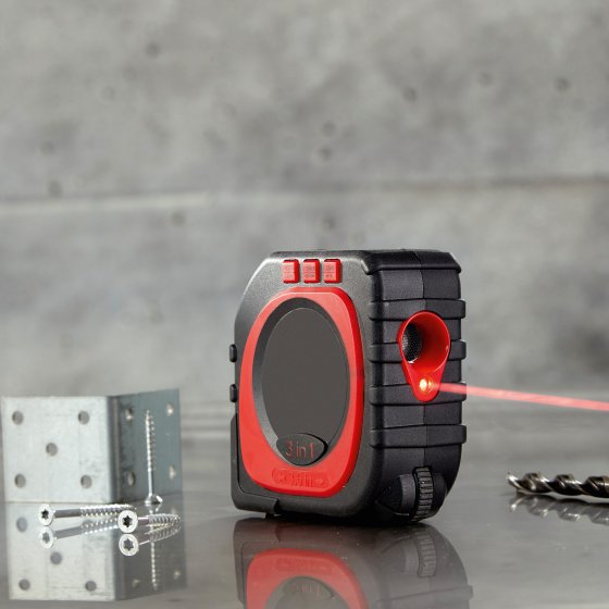 Avez-vous besoin de mesurer des courbes, périmètres et objets incurvés – et pas simplement des lignes droites ? Dans ce cas, l’APPAREIL NUMÉRIQUE DE MESURE DE CONTOUR est l’instrument parfait : son fil étirable (3,5 m) peut être facilement positionné autour de toute forme géométrique. La roulette intégrée sert à mesurer de manière simple et rapide les grandes distances jusqu’à 100 m – y compris avec interruptions. La fonction de mesure ultrasonique par pointeur laser est indiquée pour les courtes distances à vol d’oiseau jusqu’à 7,5 m. Fonctionne avec 4 piles AAA (vendues séparément). Dimensions du boîtier (l x H x P) : env. 9 x 4 x 9 cm. Un appareil qui permet de tout mesurer !