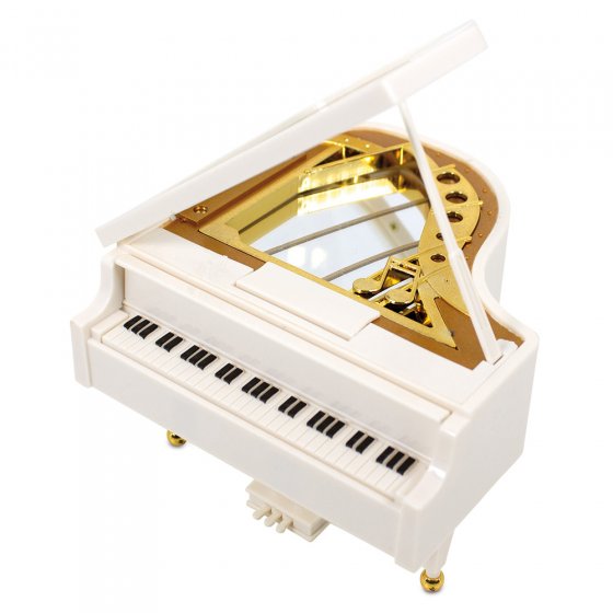 Ludwig van Beethoven est né il y a 250 ans et, à ce jour, il continue d'inspirer les gens du monde entier. En son honneur, nous avons choisi pour vous cette BOÎTE À MUSIQUE AVEC BALLERINE. Remontez la boîte à musique : le morceau de piano le plus célèbre du monde retentira : "Lettre à Elise". La gracieuse ballerine fait virevolte et effectue des pirouettes sur le piano à queue, le tout au son de la mélodie. Il est même possible d'ouvrir le couvercle. Dimensions (L x l x H) : env. 13 x 12 x 8 cm (ouvert env. 19 cm de haut). Matière : synthétique. Le remontoir se trouve sur le fond de la boîte à musique. Un adorable petit chef-d'œuvre pour votre collection.