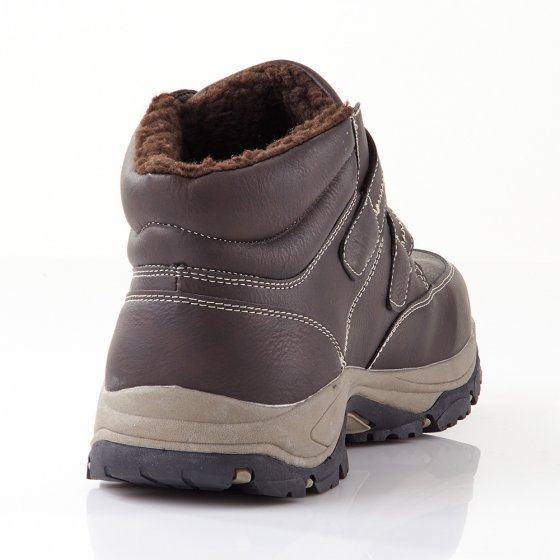 Les BOOTS À MEMBRANE CLIMATIQUE ET FERMETURE AUTO-AGRIPPANTE gardent vos pieds au chaud et au sec tout l'hiver ! En effet, elles sont non seulement dotées d'une doublure textile chaude, mais aussi d'une membrane technique qui repousse l'eau venant de l'extérieur mais laisse rentrer l'air avec un effet thermorégulateur. La double patte auto-agrippante permet d'ouvrir largement les chaussures. Vous pouvez ainsi les chausser rapidement et ajuster la fermeture selon vos besoins. Le bord de tige et la languette sont rembourrés. La semelle synthétique antidérapante est flexible et offre une bonne adhérence au sol. Côté esthétique, les boots en polyuréthane d'entretien facile se distinguent par le mélange de matériaux et les surpiqûres décoratives.