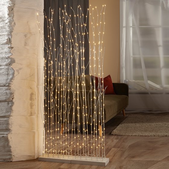 Comme une œuvre d'art de la nature : douze branches de saule artificielles d'allure très réaliste sont plantées dans un socle recouvert d'une lasure blanche – et créent de magnifiques accents lumineux blanc chaud ! Le cordon d'alimentation fait environ 3 mètres, ce qui permet de placer les BRANCHES LUMINEUSES DE SAULE en tout endroit dans une pièce : comme accroche-regard devant un mur nu, comme source de lumière dans un hall d'entrée ou encore comme paravent pour diviser une grande pièce. Elles s'harmonisent avec toutes les couleurs et styles d'intérieur. Alimentation secteur 230 V. Dimensions (l x H x P) : env. 34 x 150 x 15 cm. Un conseil : l'alignement de deux modules produit un effet encore plus spectaculaire. Profitez du prix avantageux par lot de 2 pour illuminer votre intérieur de manière encore plus créative !