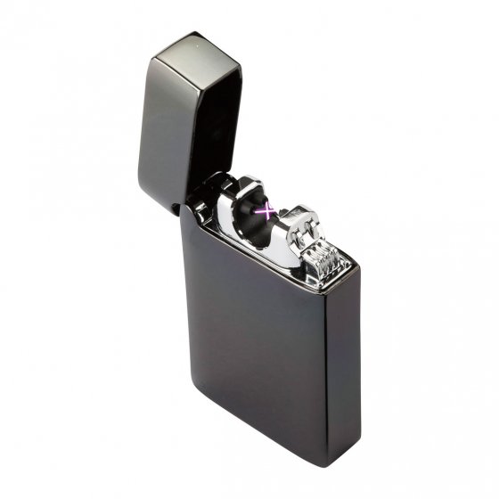 Le BRIQUET "DE LUXE" DOUBLE ARC ÉLECTRIQUE vous permet d'allumer vos cigarettes en grand style. Le boîtier élégant d'un noir brillant et d'une excellente qualité tient bien dans la main. Au lieu d'une flamme, il produit sur simple pression un arc électrique en forme de croix alimenté par un accumulateur LiPo puissant. Son avantage : la tempête, le vent et le froid n'affectent aucunement le fonctionnement car l'allumage est électrique. L'accumulateur se recharge par câble USB (fourni). Dimensions du briquet (L x l x H) : env. 7 x 4 x 2 cm. Offrez-vous ce luxe !