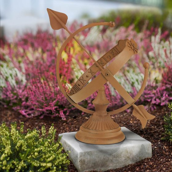 Saviez-vous que les cadrans solaires existent depuis plus de 2.500 ans ? Toutefois, le cadran solaire équatorial classique avec anneau de chiffres et flèche porte-ombre date seulement de l’époque baroque. Enjolivez votre jardin à l’aide de ce CADRAN SOLAIRE DÉCORATIF IMITATION ROUILLE ! Il peut être posé n’importe où et son apparence patinée en fait un objet purement décoratif de très belle allure dans les endroits ombragés. En l’exposant au soleil, vous pouvez observer l’ombre de la flèche se déplacer sur l’anneau gradué. Dimensions : diamètre env. 26 cm, hauteur env. 30 cm. Accueillez la tendance rouille dans votre jardin, sur votre terrasse ou devant votre entrée !