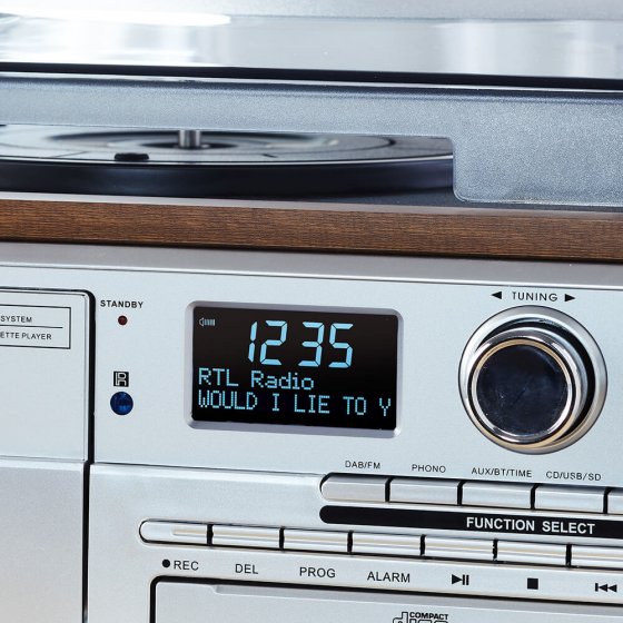“Als Kompaktanlage nur zu empfehlen, hier ist alles da: FM/DAB+-Tuner, Plattenspieler, CD, USB-Anschluss, SD-Schacht und Cassette, Überspielmöglichkeiten aller Art - auch mit Fernbedienung ”