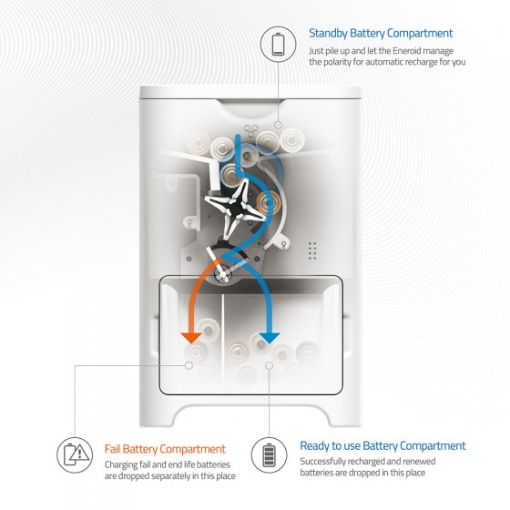 Nouveauté mondiale : les batteries et les piles sont automatiquement chargées et classées !