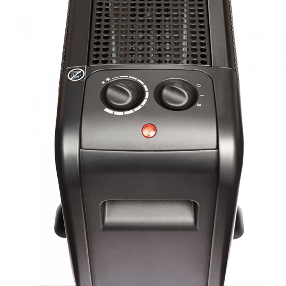 pour un appareil ultra compact (env. 65 x 29 x 23 cm). Thermostat automatique, puissance 1 500/750 W. Pour une chaleur agréable en un éclair en demi-saison ou dans les pièces utilisées occasionnellement (comme les chambres d’amis) !