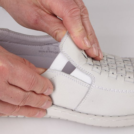 Les chaussures stretch Lightwalk pour l’été sont très confortables – et très élégantes ! Le dessus et la doublure 100 % cuir leur donnent beaucoup de douceur et de souplesse. Les zones stretch sur le cou-de-pied permettent l’ajustement individuel. La semelle intérieure (amovible) est moelleusement rembourrée, la semelle d’usure est très flexible : votre pas est plus dynamique, vous économisez des forces et prévenez la fatigue des pieds. Les chaussures ont une allure estivale avec empeigne tressée et un beau coloris clair. Elles sont d’une légèreté agréable, sont rembourrées sur les bords et ont des semelles d’usure antidérapantes en synthétique.
