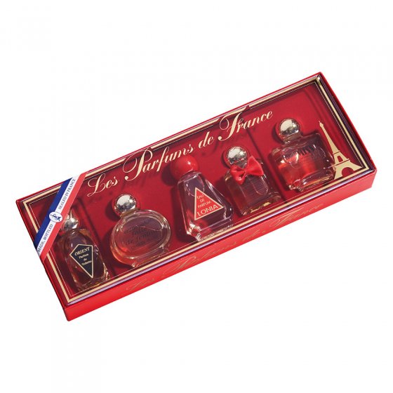 … le pays du raffinement et du bon goût. Cette collection raffinée de grande qualité baptisée "Eau de Parfums" vous propose des senteurs absolument exquises : "Orient", "Folie de femme", "Lonia", "Miss" et "Madame". Laissez-vous tenter par les 5 flacons magnifiques et raffinés (contenance env. 8 ml) et par les parfums de la COLLECTION "PARFUMS DE FRANCE" spécialement sélectionnés pour vous.