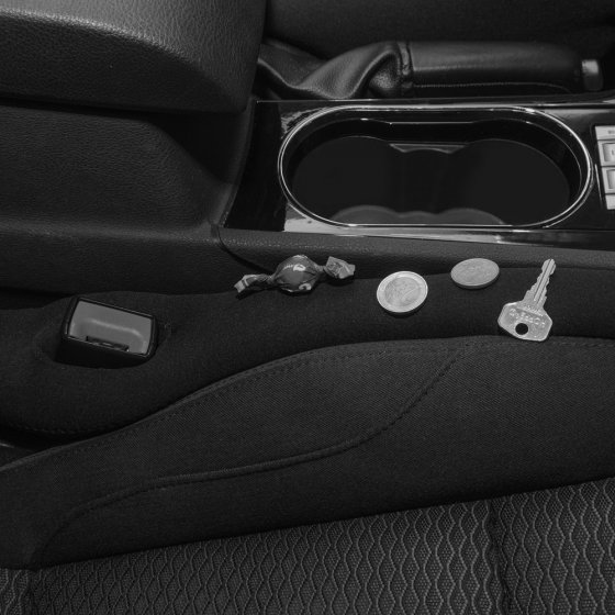 Un moment d'inattention et le malheur est arrivé : le ticket de parking, les clés de la maison ou le briquet ont disparu entre le siège de la voiture et la console centrale. Aller à leur recherche n'est pas une tâche aisée – et même très dangereux pendant la conduite ! Les deux COUSSINS BOUCHE-TROU de qualité supérieure en néoprène indéchirable comblent l'espace entre les sièges et ne laissent rien passer. Placez-les simplement entre le siège et la console, passez l'attache de la ceinture de sécurité par la fente prévue à cet effet et le trou est bouché. L'excellente finition de ces coussins les rend insensibles aux mouvements, même violents, des sièges. Plus rien ne passe, ni les pièces de monnaie, ni les portables et même pas les papiers de bonbons ou les miettes de pain ! Dimensions (l x H x P) : env. 45 x 8 x 7 cm ; poids : env. 87 g. Matière lavable et résistante à l'eau. Évitez désormais les recherches éperdues et risquées pendant la conduite !