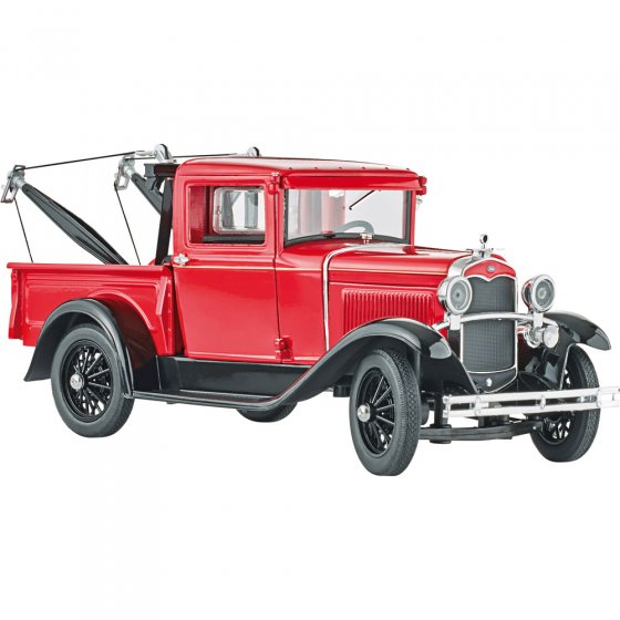 La Ford modèle A a presque tout connu : la mauvaise image de Ford dans les années 1928, le malus imposé aux moteurs à 4 cylindres (Chevrolet et General Motors proposaient 6 cylindres) et même la Grande Dépression. Vendue à plusieurs millions d’exemplaires, elle était pourtant plutôt banale et même encore équipée, comme les calèches d’autrefois, d’essieux rigides et de ressorts à lames transversales. Mais son rapport qualité-prix était imbattable. La Ford A était incroyablement solide ; elle passait même pour un modèle capable de tourner à plein régime. Ne passez pas à côté de ce best-seller pas comme les autres en modèleréduit à l’échelle 1:18 et en tous points dèle à l’original! La DÉPANNEUSE FORD A construite en 1931 est dotée d’un essieu avant directeur et de portes qui s’ouvrent ; le hayon et le capot s’ouvrent également. Les crochets de remorquage sur la benne bougent. Ce modèle-réduit est en zinc moulé sous pression, les pièces de xation sont en plastique ou en gomme. Dim. env. 23 x 8 x 10 cm. Offrez-vous un morceau du rêve américain !