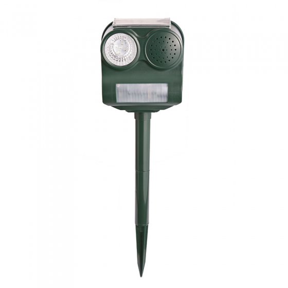 Servez-vous de cet EFFAROUCHEUR D'OISEAUX SOLAIRE pour protéger votre pergola ou votre balcon avec les meubles de jardin, ainsi que votre verger ou vos cultures. Son capteur à infrarouge détecte les oiseaux à 10 m de distance et les effraie : le jour par un son dont le volume est réglable (cri d’aigle, aboiements ou coups de fusil) ; la nuit, il émet une lumière stroboscopique grâce à 5 LED puissantes (avec ou sans signal sonore au choix). Panneau solaire performant, batteries intégrées. À planter dans le sol grâce au piquet ou à fixer au mur ou sur un arbre grâce aux œillets de fixation. Dim. (L x l x H) : env. 9 x 13 x 14 cm. C’est vous qui donnez le ton, haut et fort !