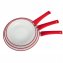 L'huile est-elle assez chaude ? La température est-elle optimisée pour cuire votre steak comme vous l'aimez ? Plus besoin de vous poser la question : notre ENSEMBLE DE 3 POÊLES AVEC INDICATEUR DE TEMPÉ- RATURE vous répond avec précision ! Dès que la température atteint 80 °C, le bord de la poêle devient blanc. Les viandes carbonisées ou dures, le poisson trop cuit ou qui attache : tout cela appartient désormais au passé ! Ces poêles de qualité en aluminium forgé (Ø 20, 24 et 28 cm) sont revêtues d'une céramique antiadhésive de grande qualité. Plus rien n'adhère, plus rien de brûle, et en plus elles se lavent très facilement ! Avec poignées Soft- Touch. Fond d'environ 4 mm d'épaisseur, convient également pour l'induction. Réussissez à coup sûr tous vos plats ! Les chefs l'adorent, et les cuisiniers amateurs aussi !