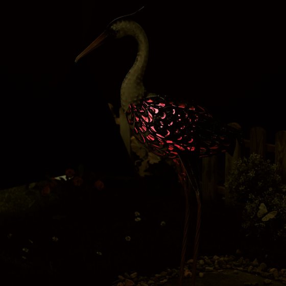 Les hérons cendrés sont des solitaires : aucun autre héron ne se risquerait là où se trouve déjà un autre héron. Avec ce HÉRON DE JARDIN SOLAIRE ressemblant en tous points à un vrai, vous ferez bon usage des nombreuses qualités de cet élégant héron cendré : posez-le directement au bord de votre bassin de poissons. Non seulement il est superbe à regarder, mais il empêche également que votre bassin soit pillé par de vrais hérons. À l’intérieur de ce héron sont dissimulées des LED de couleurs différentes qui, quand le soir tombe, éclairent en alternant les couleurs ou en continu en blanc (désactivable). Grâce à son panneau solaire et sa batterie intégrée, ce héron n’a besoin ni de courant, ni de piles.En pleine charge, il éclaire pendant env. 6 heures. Mesurant env. 81 cm, cet oiseau est aussi grand qu’un vrai. Votre bassin de poissons continuera de prospérer sous l’oeil bienveillant de ce héron cendré !