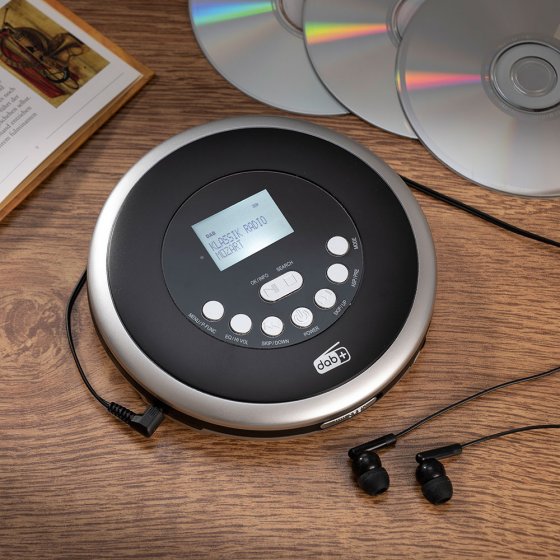 Le LECTEUR CD / DAB+ PORTABLE réunit un lecteur de CD et une radio ultra moderne DAB+ et permet d’accéder à tous les genres de divertissement acoustique pendant les déplacements. Avec ses nombreuses fonctions, notamment ses égaliseurs préprogrammés, l’appareil n’a rien à envier à une chaîne HiFi. La radio reçoit aussi les signaux analogiques FM et est compatible avec le système RDS. Alimentation au choix par 2 piles ou piles rechargeables AA (vendues séparément) ou secteur (adaptateur secteur inclus). Vous avez donc toujours la source de courant qui convient. Dimensions (Ø x H) : env. 15 x 3 cm. Cet appareil répond à toutes les attentes de ceux qui veulent emporter leur musique partout avec eux !