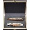 Une fabrication manuelle de grande facture, un design authentique et des matériaux de très grande qualité pour des objets cultes : les COUTEAUX DE POCHE "LAGUIOLE" au tranchant supérieur.• Un couteau de poche à manche en bois d’olivier et tire-bouchon intégré• Un couteau de poche à manche en bois de rose en acier chromé• Lames en acier inoxydable d’env. 8 cm de long, longueur des couteaux env. 20 cm (ouverts)• Coffret en bois inclus