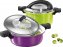 Les cocottes-minute et cuiseurs vapeur souffrent toujours de cette réputation d’être dif ciles à utiliser : il est temps de mettre n à cette idée reçue ! Avec ce LOT DE FAITOUTS À BASSE PRESSION cuire à la vapeur est un jeu d’enfant : grâce au ventilateur situé dans le couvercle, qui assure un équilibre parfait de la vapeur à tout moment, vous pouvez soulever le couvercle à n’importe quel moment et éviter une surcuisson. Et grâce à leur revêtement anti-adhésif en céramique Bio-Lon, les aliments ne brûlent pas et ne collent pas. Ce lot se compose de 2 faitouts, d’un couvercle vapeur et d’un couvercle- assoire. Verrouillez le couvercle-passoire avec les poignées Quick-Lock pour égoutter l’eau du faitout sans risque de vous brûler. Et pour que vous puissiez voir où en est la cuisson, le couvercle-passoire est doté d’une petite fenêtre. Ces faitouts s’utilisent sur tous types de feux, y compris l’induction. Contenance : 4 l et 6 l. Diamètre des couvercles (vapeur et passoire) : env. 24 cm. Ces faitouts sont la clé d’une cuisine pauvre en matières grasses et riche en vitamines !