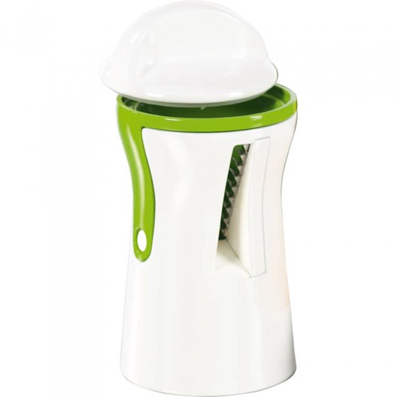 Vos salades de crudités monotones vont prendre un sacré coup de jeune ! Avec cette MANDOLINE POUR JULIENNE ET SPIRALES transformez d'un seul geste vos concombres, carottes, radis et autres en lamelles appétissantes et en boucles audacieuses. Il suffit de savoir se servir d'un taille-crayon : placez le légume dans la mandoline et tournez ! Vos obtiendrez au choix des spirales fines ou des lamelles larges, pour de délicieuses salades et tagliatelles de légumes, sans le moindre effort. Pas d'inquiétude pour le nettoyage de la mandoline : elle passe au lave-vaisselle. Dim. env. Ø 7 cm x h 14 cm.