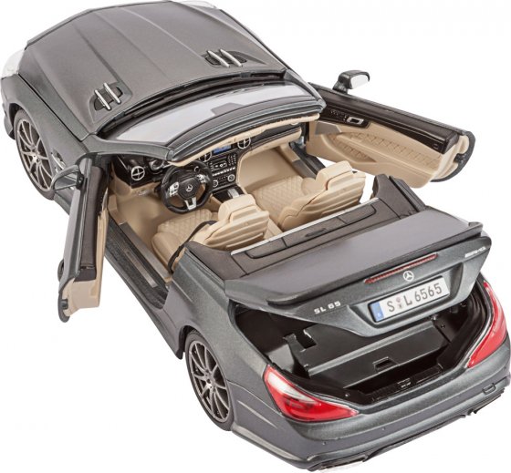 AMG, préparateur de véhicules hautes performances pour Mercedes-Benz, fête cette année son 45e anniversaire. L’entreprise édite pour l’occasion une série limitée de son nouveau modèle Mercedes SL 65 AMG. Il n’existe dans le monde que 45 exemplaires de la série limitée à moteur V12 6 L biturbo de 630 chevaux. Et ceux-ci sont bien trop chers pour un acheteur lambda ... Même si vous ne pouvez pas vous offrir une de ces voitures, laissez-vous séduire par les détails fascinants de réalisme de la MERCEDES SL AMG 65 CABRIOLET. En effet, ce modèle réduit en zinc moulé sous pression à l’échelle 1:18 n’a rien à envier à son aîné ! Conforme à l’original, de la boîte de vitesse à la peinture grise laquée satinée. Ouverture des portes, du coffre et du capot. La version commerciale ne sera mise en vente qu’en septembre 2013 mais vous pouvez d’ores et déjà commander ce modèle réduit de collection très rare !