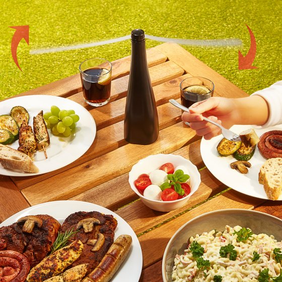 Dès qu’il commence à faire plus chaud, les voilà qui arrivent – les insectes qui nous coupent l’envie de manger dehors. Voici une solution géniale : le MOULIN CHASSE-MOUCHES ! Silencieux et élégant, il éloigne les insectes gênants à une distance d’environ 1 mètre en faisant tourner ses deux ailes irisées, et vous pouvez savourer tranquillement votre petit déjeuner ou votre goûter. Le moulin fonctionne sur piles et peut être utilisé selon les besoins, par exemple au camping. Alimenté par 2 piles AA (vendues séparément). Dimensions (l x H x P) : 7 x 25 x 7 cm ; poids : env. 170 g. Ne vous énervez plus en chassant les insectes vous-même !