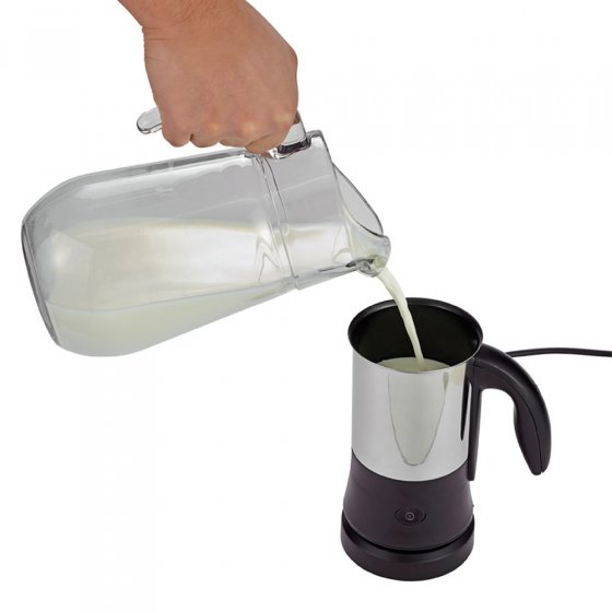 de lait onctueuse ou un délicieux chocolat chaud en quelques secondes et sans risquer de faire brûler le lait. L’appareil s’éteint ensuite automatiquement et le pot en acier inoxydable avec revêtement anti-adhésif se nettoie facilement. Un système de protection contre la surchauffe et contre la mise en marche à vide assure une grande sécurité d’utilisation. Contenance : env.