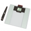 utrefois on dessinait un trait sur le mur pour suivre la croissance des enfants... Déterminez aujourd’hui de façon bien plus fiable et précise la taille et le poids de vos proches (et les vôtres !) avec ce PÈSE-PERSONNE AVEC MESURE DE LA TAILLE ! Il vous suffit de monter sur le plateau de la balance et de laisser le rayon infrarouge traverser votre corps. Grâce aux capteurs électroniques, la balance affiche votre poids avec une précision de 100 g. Simultanément, les capteurs infrarouges mesurent la taille de 50 à 200 cm avec une précision d’environ 5 mm. A partir de ces deux mesures, cet appareil High-Tech calcule automatiquement l’IMC (Indice de masse corporelle) et vous donne des  informations sur le poids, le surpoids ou le sous poids. Et vous pouvez en tirer vos conclusions ! Balance au design  moderne ultra plat (seulement environ 2 cm d’épaisseur !) et environ 6 mm d’épaisseur pour la plaque de verre, taille 33 x 33 x 2 cm. Affichage LCD grand format pour une lecture facile, charge maximale 150 kg, démarrage et arrêt automatique, fonctionne avec 2 piles AA (vendues séparément) et 2 piles bouton pour le rayon de mesure infrarouge