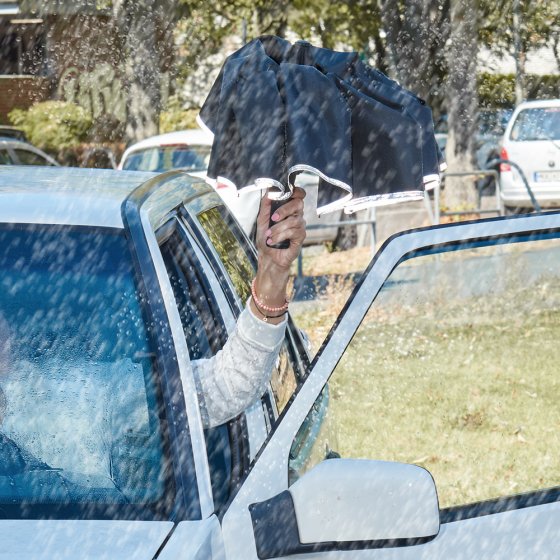 - Une fois fermé, ce parapluie se range aisément dans un sac