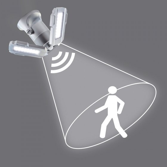 Le PROJECTEUR DE PLAFOND À PANNEAUX ORIENTABLES est bien plus qu'une lampe d'intérieur. Grâce à ses trois panneaux de 24 LED chacun, il peut servir à illuminer ponctuellement certains endroits de la pièce ou à éclairer une large zone. Le rendement lumineux de 500 lm est suffisant pour les surfaces importantes, par ex. celles d'un double garage, d'un grenier ou d'une cave. Le projecteur s'allume automatiquement (seulement quand il fait noir) et s'éteint au bout de trente secondes si son capteur de mouvement ne détecte plus aucune activité. La lampe fonctionne sur pile (trois piles C, vendues séparément), aucune installation de câble n'est donc requise. Dimensions : Ø env. 33 cm (panneaux rabattus), hauteur env. 15 cm. Faites de la lumière chez vous – de manière économique et pratique.