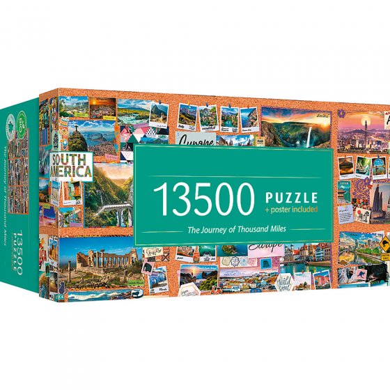 Les amateurs de puzzles pourront s’en donner à cœur joie avec le puzzle 13.500 pièces « Voyage autour du monde », et ce, en choisissant la grandeur qui lui convient. En effet : le puzzle se compose de 9 puzzles de 1.500 pièces, emballés séparément. Chaque puzzle est déjà en soi un voyage passionnant dans le continent qu’il représente. Les puzzles terminés peuvent ensuite être reliés entre eux, ce qui accroît considérablement le plaisir. Toutes les pièces sont en carton épais (2,25 mm), offrant un maximum de stabilité et de solidité. Dimensions (puzzle complet, l x H) : env. 199 x 138 cm. Adieu l’ennui !