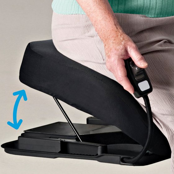 Un objet utile, qui ne fonctionne pas mécaniquement, mais par électricité et qui est immédiatement prêt à l'emploi. Idéal pour les fauteuils, les canapés et les chaises. Pour se lever facilement en toute sécurité, ce releveur amène l'utilisateur en position debout. Il suffit d'actionner le bouton de la commande manuelle, l'appareil monte ou descend lentement jusqu'en position assise. Le coussin d'assise de haute qualité en mousse à mémoire de forme évite les points de pression et les deux poignées ergonomiques facilitent le transport du siège. La housse amovible en polyester est lavable. Dimensions du siège (L x P) : env. 44 x 50 cm, hauteur du siège ouvert env. 25 cm, fermé env. 11 cm. Capacité de charge maximale env. 136 kg.