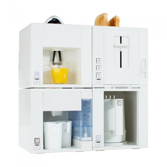 presse-agrumes et d'un grille-pain, le tout assemblé et à portée de