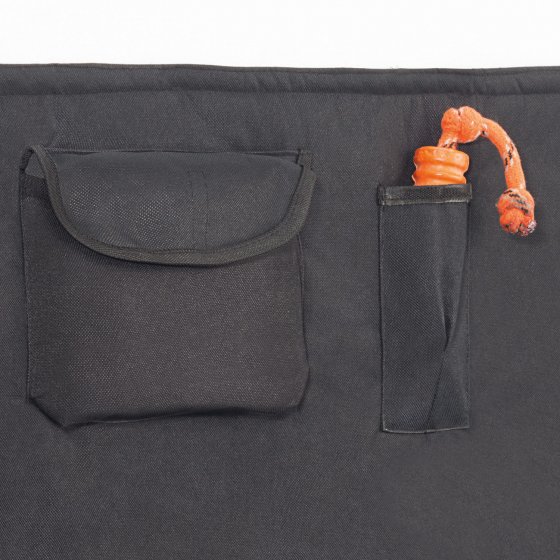Ce TAPIS DE COFFRE garantit un confort parfait à votre animal préféré en voiture, tout en préservant votre coffre des petits "accidents" ! Il protège parfaitement votre coffre et son revêtement intérieur des salissures, de la pluie et des poils de chien. Ultra pratique : son protège pare-chocs amovible protège votre peinture des rayures quand votre animal monte ou descend du véhicule. Et grâce à son dessous antidérapant, votre animal ne glisse pas pendant le trajet. Nylon robuste recouvert de polaire douce et bien chaude. S'attache facilement par des velcros solides qui se règlent en fonction des dimensions de votre coffre. Dim. env. 165 x 126 cm, protège pare-chocs env. 76 x 47 cm de plus. Facile à entretenir, solide et résistant aux intempéries, il s'essuie facilement. Et tout le monde en profite : voiture, chien et maître !
