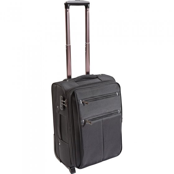 Une bonne valise à roulettes doit pouvoir endurer pas mal de choses : il faut pouvoir lui faire monter les marches d'escalier sans problème, la faire rouler sur les parkings en asphalte et la ranger dans les compartiments à bagages. Notre VALISE À ROULETTES ULTRA ROBUSTE vous suit partout : grâce à son châssis en aluminium (coque en polyester) et à ses roulettes arrière, soulever votre valise dans les escaliers est un jeu d'enfant et elle fait face à toutes les situations en voyage. Avec 2 poches extérieures zippées, joint de dilation zippé et serrure à chiffres intégrée sur le compartiment principal. Dim. (L x l x h poignée rentrée) : env. 25 x 38 x 55 cm. Poids env. 3 kg. Bon voyage !