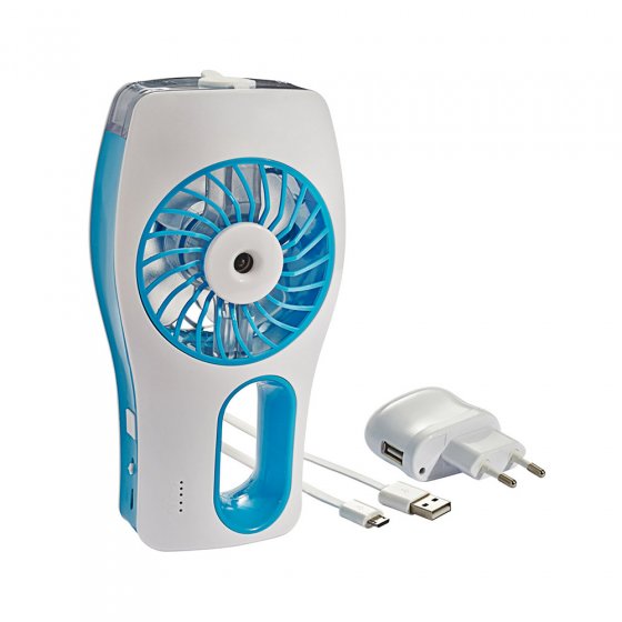 Il fait chaud et lourd ? Gardez la tête froide avec ce VENTILATEUR-BRUMISATEUR PORTABLE À BATTERIE ! Ce petit appareil pratique a fait ses preuves dans les pays chauds, car en plus d’une brise agréable, il peut aussi si on le souhaite émettre une fine brume rafraîchissante. Il est doté d’un réservoir d’eau de 35 ml, suffisant pour environ 60 minutes d’une agréable brise maritime. La batterie puissante au lithium a une autonomie pouvant aller jusqu’à sept heures – selon le mode choisi. Vous avez le choix entre le mode ventilateur, brumisateur ou les deux en même temps. La livraison comprend un câble de charge USB et un adaptateur 230 V. Emportez ce petit ventilateur de table – aussi performant qu’un grand – partout avec vous et profitez également de son action rafraîchissante chez vous ou sur la terrasse !