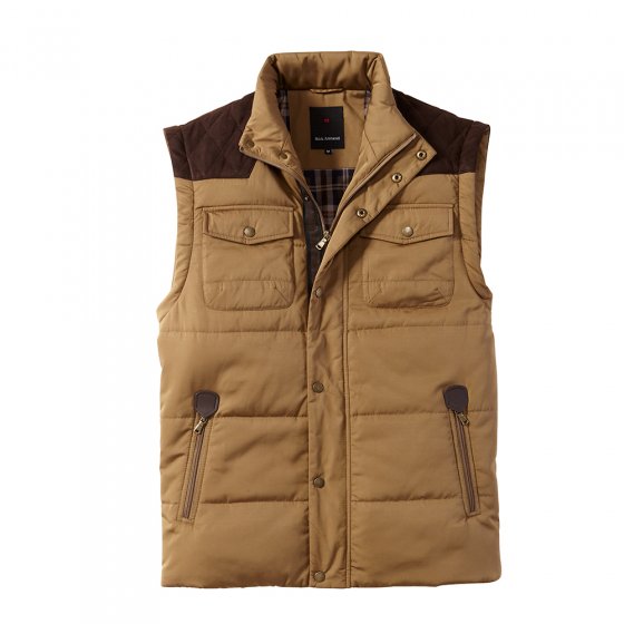 Cette belle veste à manches amovibles en 100 % polyester convainc par ses nombreuses possibilités : la capuche doublée et matelassée est amovible, tout comme les manches. La veste se transforme ainsi aisément en gilet, avec - au choix - un col droit ou rabattu. Autres équipements parfaitement pensés : un vaste espace de rangement dans les poches plaquées sur la poitrine avec rabat et bouton-pression et dans les 2 poches côtés zippées. La doublure à motifs est agréablement matelassée. La glissière devant est couverte par une patte à bouton-pression. Le parement épaules et les pattes des manches affichent un bel aspect cuir velours. Un superbe exemple de modularité !